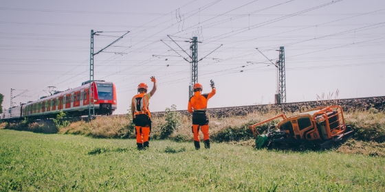 Zu guter Letzt erklärt Werner, wie die Erdung der Oberleitung funktioniert. Dies ist immens wichtig, damit die Helfer bei Einsätzen nicht selbst gefährdet werden und erkennen können, ob diese auch ordnungsgemäß ausgeführt wurde. Bei der hohen Volt-Zahl heißt es auch hier: erstmal Abstand wahren. Nur der S-Bahn Notdienst oder Feuerwehrleute, die eine spezielle Zusatzschulung zum Thema „Bahn erden“ bekommen haben, dürfen sich um die Sicherung der Leitung kümmern. Zuerst wird der oder die Fahrdienstleiter:in der Strecke kontaktiert, welcher diese von der Stromzufuhr trennen kann. Erst wenn die Freigabe erteilt wurde und die Strecke stromlos ist, wird mit einer sehr langen Stange, dem sogenannten Spannungsprüfgerät, gemessen, ob noch (Rest-)Strom auf der Leitung ist. Ist alles ok, kann mit der Erdung begonnen werden. Der Spezialist verbindet das Erdungskabel mit der Schiene, danach wird die Erdungsklammer in die Oberleitung eingehängt und gesichert. So wird der Strom im Notfall abgeleitet – Der S-Bahn-Zug ist nun sicher und die Helfer können ihrer Arbeit nachgehen.